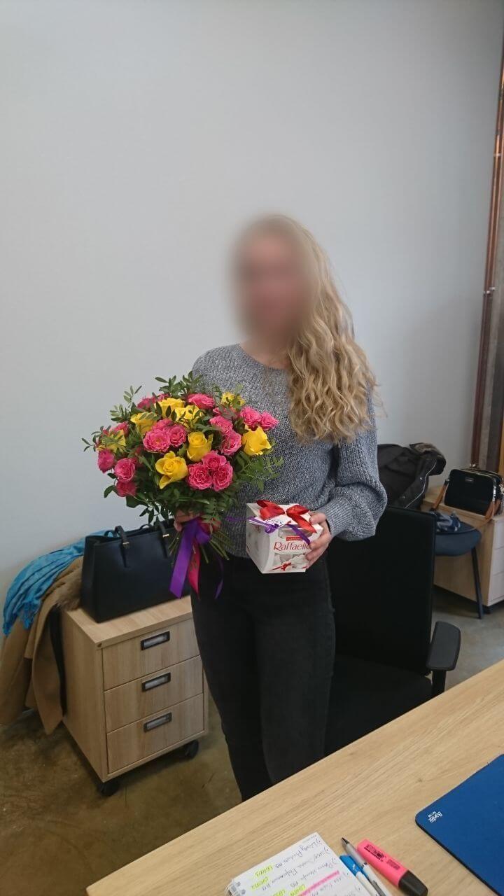 We delivered another order to Rīga. The customer ordered: Flower delivery Rose garden (The composition of the bouquet may differ slightly from the one shown in the picture, depending on the season!). Flower delivery Raffaello 150g (RAFFAELLO sweets, 150g