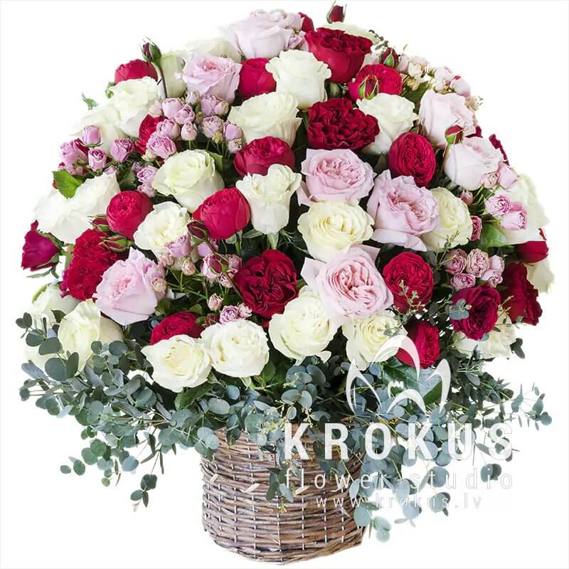 Basket of peony type roses