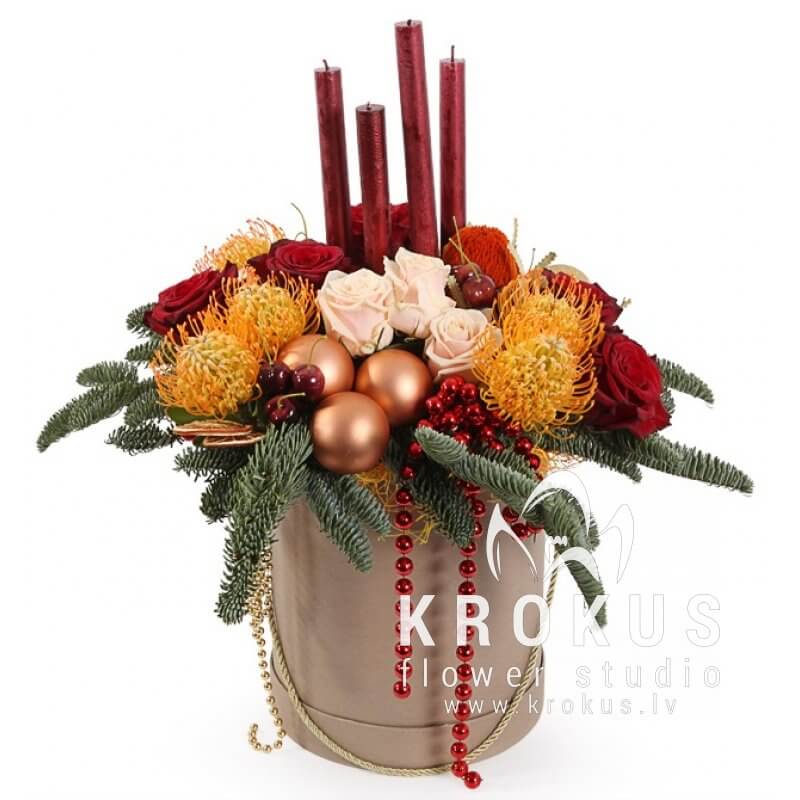 Adventes kompozīcija cepuru kastē