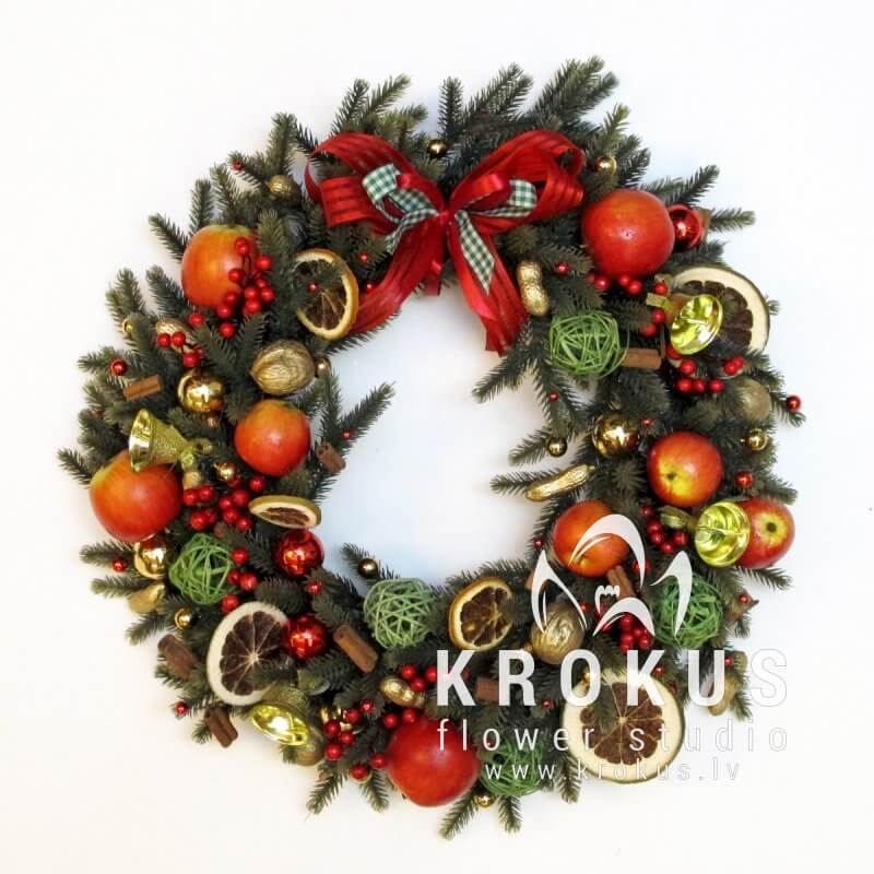 Ziemassvētku vainags "Harmonija", tika izveidots ar dziļu jēgu. Adatas nozīmē ilgmūžību, rieksti - labu veselību, apzeltītie rieksti nodrošinās labvēlīgu budžetu, citrusaugļu šķēles - skaidrs garastāvoklis, kanēlis - jautrība, ogas - jaunatne un pārējais dekors radīs svētku noskaņu!
