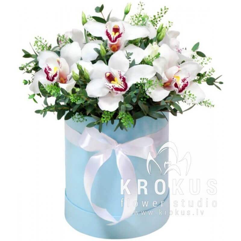 Baltas orhidejas kastītē