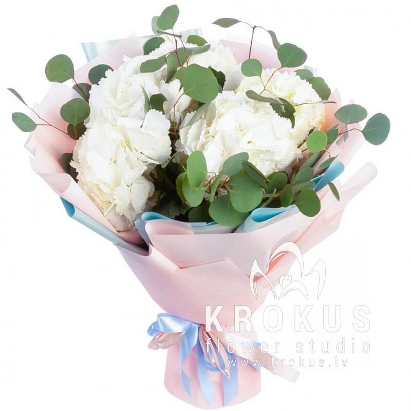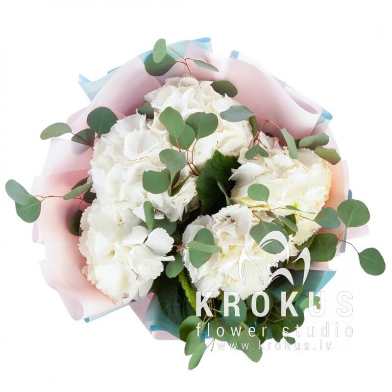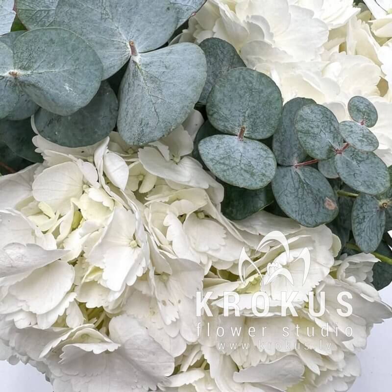 Balto hortenziju pušķis