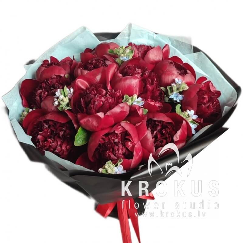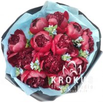 Burgundijas peoniju pušķis