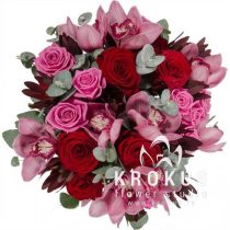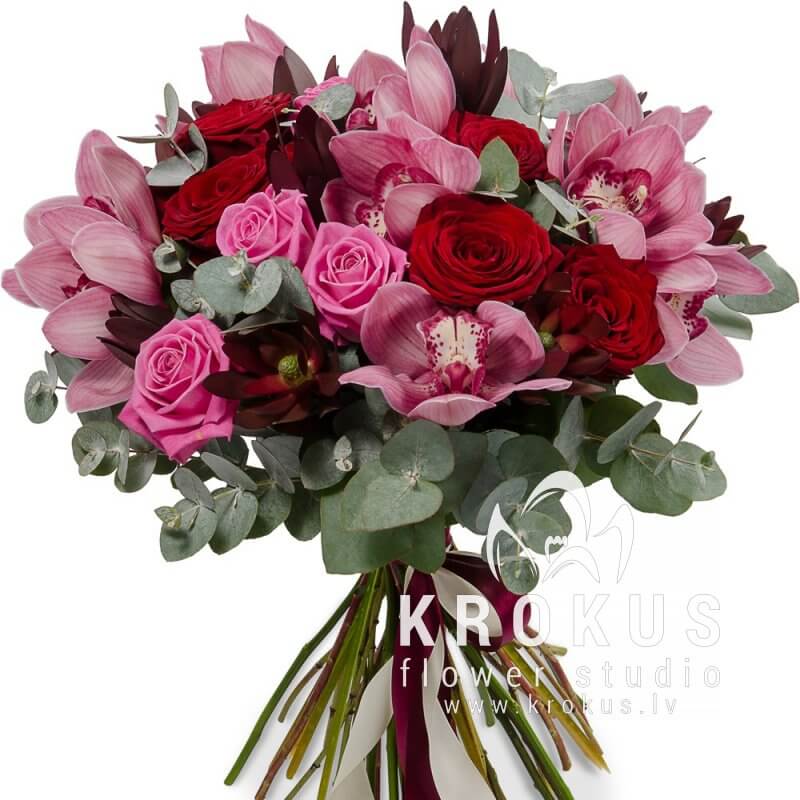 Skaistais ziedu pušķis ‘’Elegance” pilnībā attaisno tā nosaukumu. Mūsu floristi izveidoja to no brīnišķīgām divu veidu rozēm, tropiskām orhidejām, eksotiskā leukodendrona un aromātiskā eikalipta.Tādu pušķi var dāvināt dzimšanas dienā gan sievietei, gan Vīrietim.Tā būs patīkama dāvana satikšanās reizē un vienkārši uzlabos omu tās saņēmējam,dāvinot citā reizē.