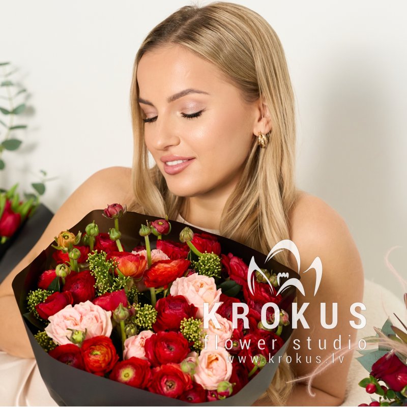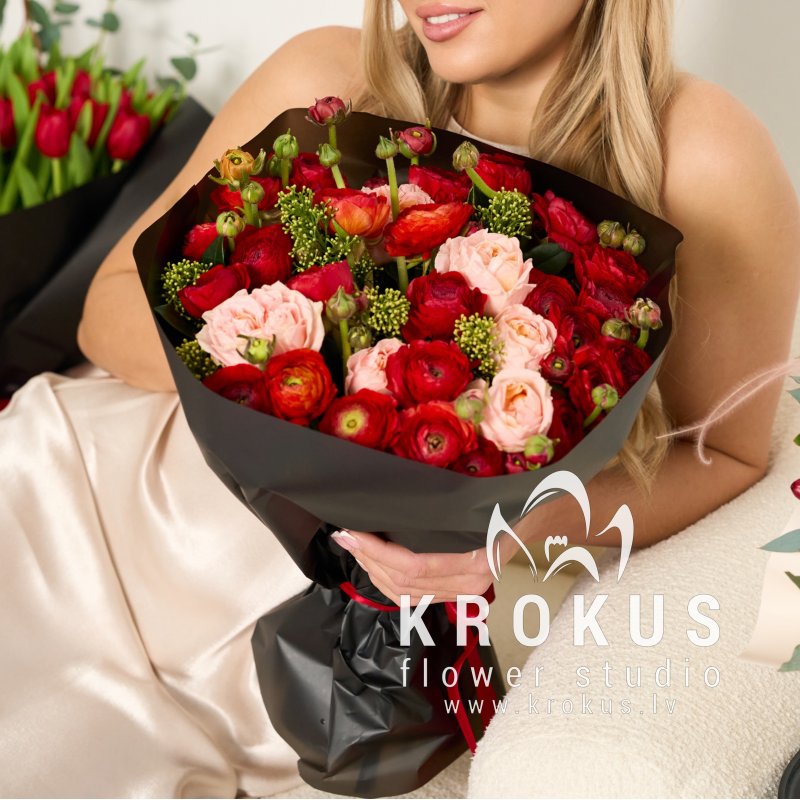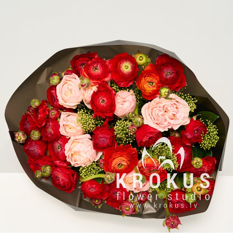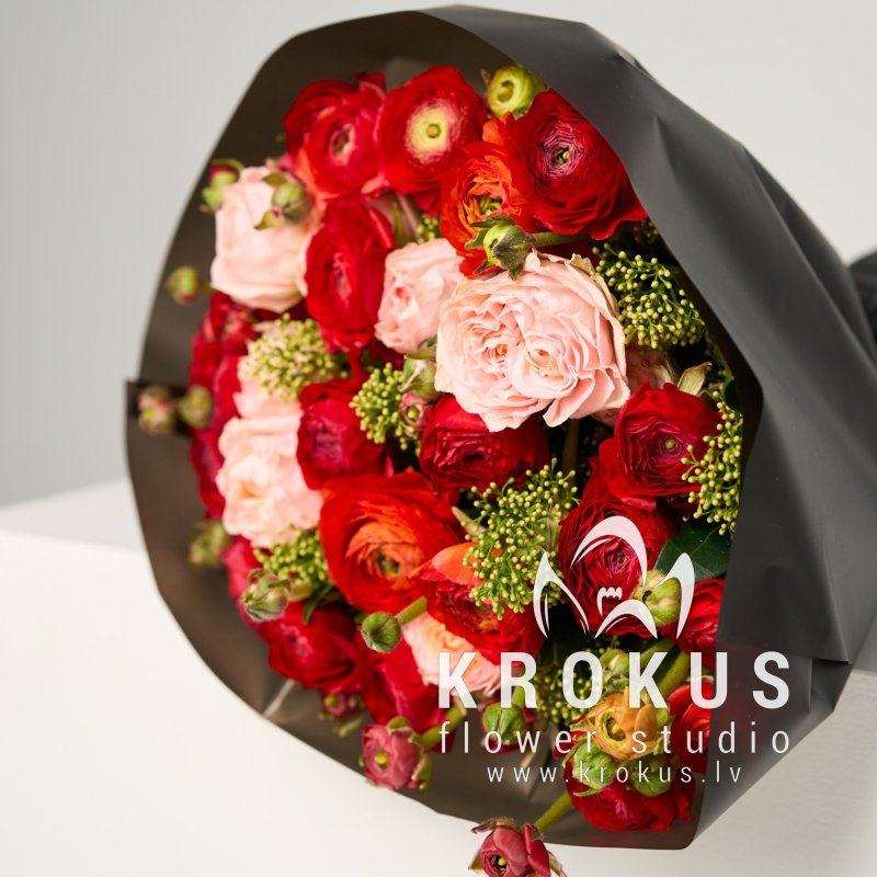 "Karaliskais šarms" – elegants pušķis no peonijveida rozēm, ranunkuļiem un skīmijas stilīgā iesaiņojumā. Ideāla dāvana īpašam notikumam: Dzimšanas Dienai, gadadienai, mīlestības apliecinājumam. Svaigi ziedi, ātra piegāde visā Latvijā, Rīgā un Rīgas rajonā. Pasūtiet tiešsaistē mūsu ziedu interneta veikalā!