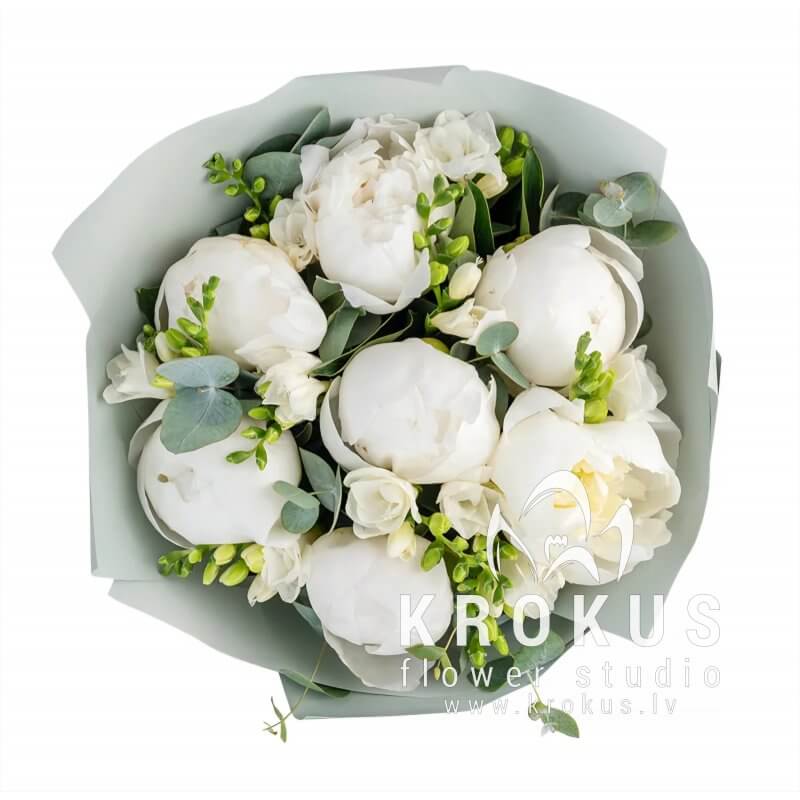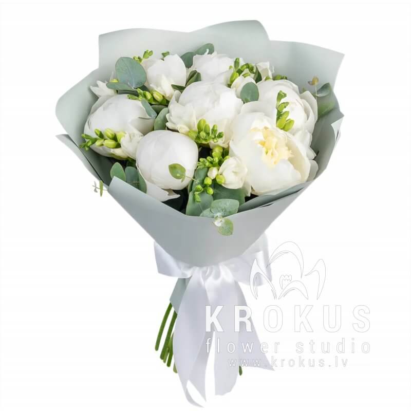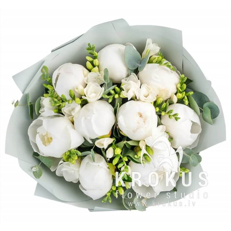 Peoniju un frēziju pušķis
