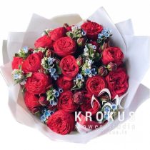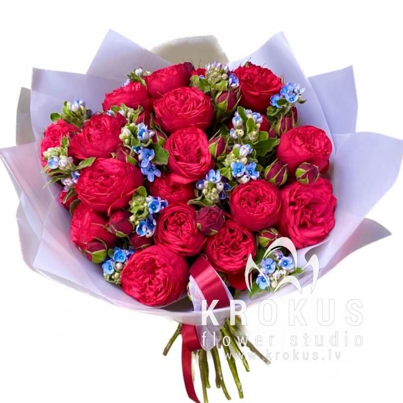 Piano rožu pušķis ar neaizmirstulītēm