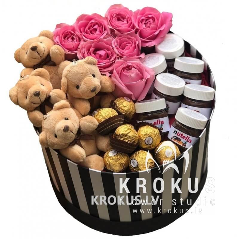 Kompaktais d=19cm, 7 rozes, 1 lācis, 2 nutellas, 5 fererro
