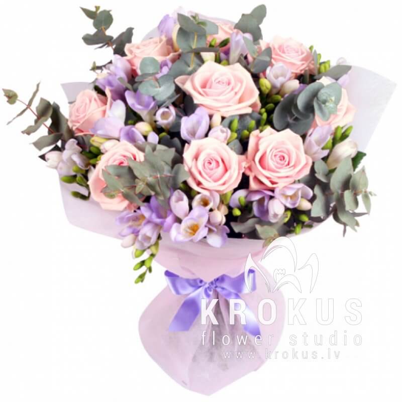 Liels un skaists ziedu pušķis runā mīlestības valodā. Tas ir izgatavots romantiskā, ļoti sievišķīgā stilā. Šie ziedi tiek uzskatīti par sieviešu laimes simbolu. Pievienojiet attiecībām jaunus, spilgtus toņus.