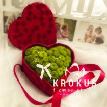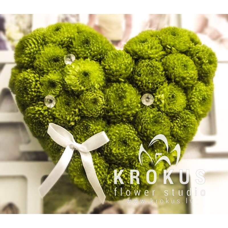 Zaļā sirds - universāla ziedu kompozīcija! Tā ir piemērota kā oriģināla ziedu Dzimšanas Dienas dāvana, tā ideāla dāvana Valentīna diena. Pārsteidz jaunlaulātos kāzu dienā, uzdāvini neaizmirstamu dāvanu un tā kalpos viņiem par gredzenu spilventiņu. Izraisīs patīkamas emocijas un pacels garastāvokli.