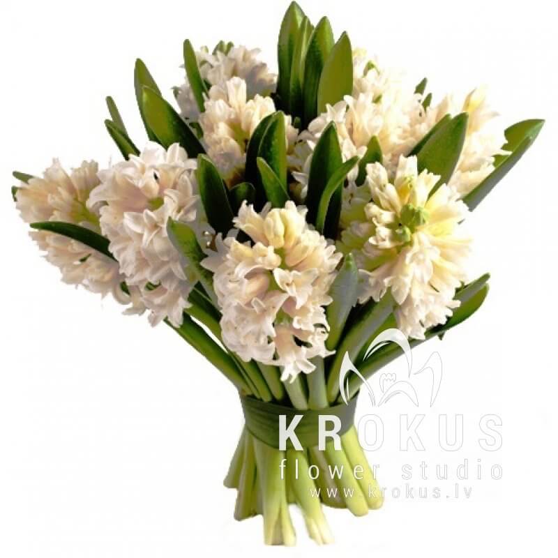 Фото букета несёт иллюстративный характер. Если для Вас очень важно получить гиацинты определённой зрелости, пожалуйста свяжитесь с нами перед заказом.