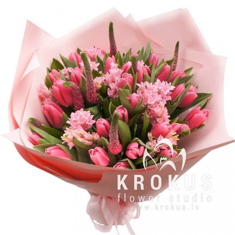 Фото букета несёт иллюстративный характер. Если для Вас очень важно получить гиацинты определённой зрелости, пожалуйста свяжитесь с нами перед заказом.
