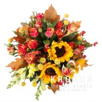 Великолепный букет, настоящее буйство красок и разнообразие натуральных растений придутся по вкусу настоящим ценителям флористики и оригинальных цветочных композиций. Удивите своих близких, друзей и родных, отправив им в день рождения, Хэллоуин или любой другой праздник прекрасный букет цветов «Осеннее солнце».