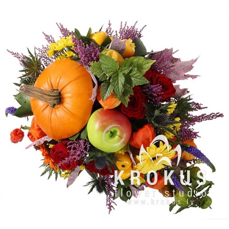 Великолепным подарком для истинных ценителей флористики и натуральных цветочных композиций станет букет «Осенний сад». Он состоит из красных роз, хризантем, гербер, а также декоративных трав и растений, помещённых в настоящую тыкву. Композиция эффектно украсит праздничный интерьер в доме, подарит самые тёплые впечатления и яркие воспоминания о торжественном событии. Подарить букет «Осенний сад» вы можете мужчине или женщине, ребёнку, коллективу, семье, коллегам, партнёрам, а также друзьям или родственникам. Поводом для такого восхитительного презента может стать день рождения, Хэллоуин или День знаний.