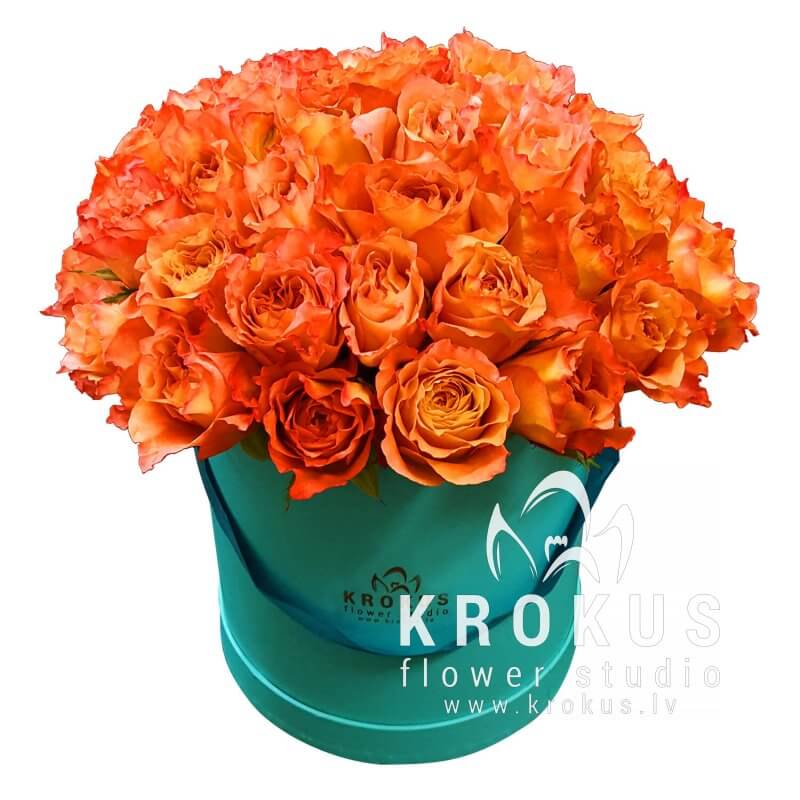 Оранжевые розы в стильной шляпной коробке
