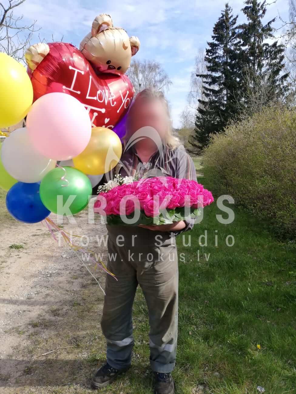 Mēs piegādājām vēl vienu pasūtījumu uz pilsētu Alsunga. Pasūtītājs vēlējās: Ziedu piegāde Sirds no rozēm "Tu esi manā sirdī". Ziedu piegāde love is… Košļājamās gumijas. Ziedu piegāde Hēlija baloni asortimentā (cena par 1 gab). Ziedu piegāde Folija Balons