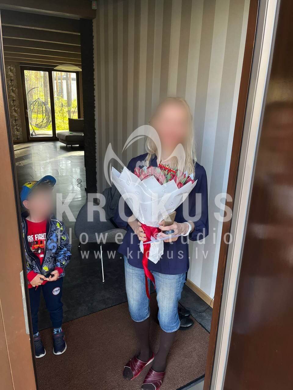 Mēs piegādājām vēl vienu pasūtījumu uz pilsētu Baltezers. Pasūtītājs vēlējās: Ziedu piegāde Peonveidīgo tulpju pušķis
