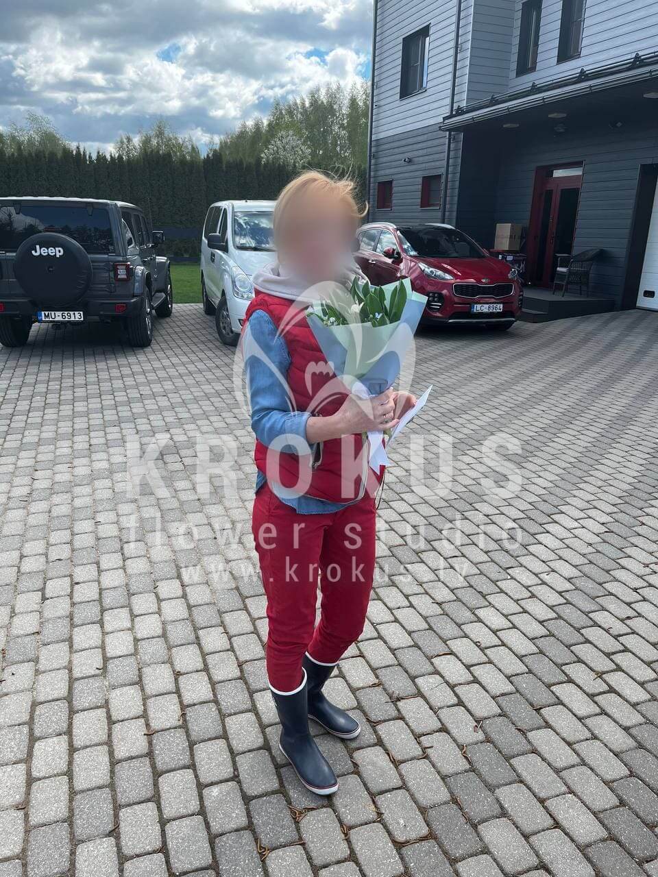 Mēs piegādājām vēl vienu pasūtījumu uz pilsētu Daugavmala. Pasūtītājs vēlējās: Ziedu piegāde Pildītās tulpes ar neaizmirstulītēm