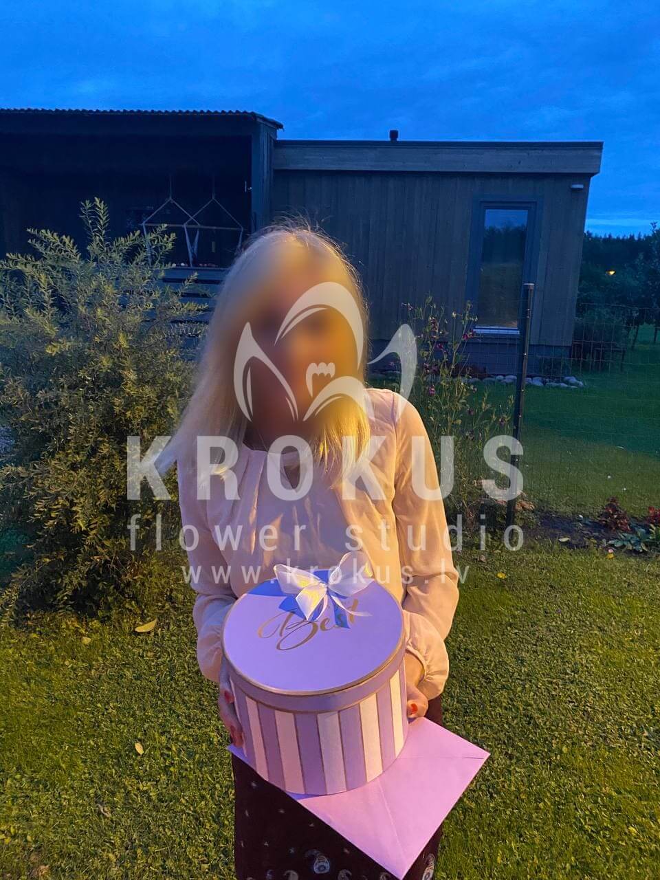Mēs piegādājām vēl vienu pasūtījumu uz pilsētu Dzidriņas. Pasūtītājs vēlējās: Ziedu piegāde Flowerbox ar macarooniem (Izmērs: