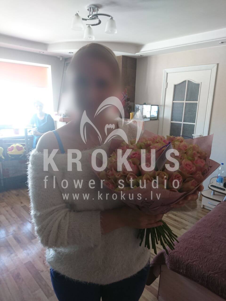 Mēs piegādājām vēl vienu pasūtījumu uz pilsētu Eleja. Pasūtītājs vēlējās: Ziedu piegāde 51 Rozā roze SUPER CENA