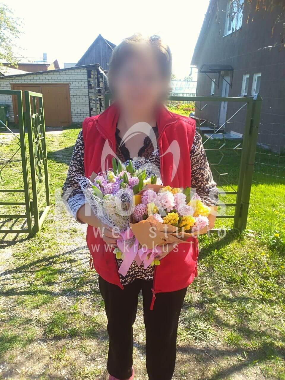 Mēs piegādājām vēl vienu pasūtījumu uz pilsētu Engure. Pasūtītājs vēlējās: Ziedu piegāde Biatrise (Attēlam fotogrāfijā ir ilustratīvs raksturs. Ja Jums ir svarīgi saņemt hiacintes noteiktā gatavības stadijā, lūdzam sazināties ar mums pirms veicat pasūtījumu.). Ziedu piegāde Luize (Attēlam fotogrāfijā ir ilustratīvs raksturs. Ja Jums ir svarīgi saņemt hiacintes noteiktā gatavības stadijā, lūdzam sazināties ar mums pirms veicat pasūtījumu.)