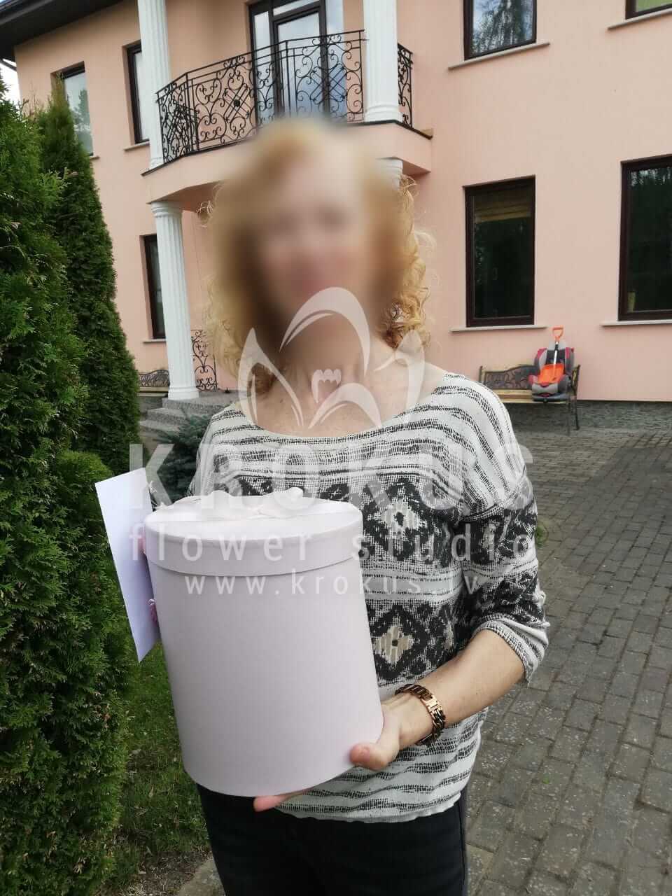 Mēs piegādājām vēl vienu pasūtījumu uz pilsētu Garciems. Pasūtītājs vēlējās: Ziedu piegāde Flowerbox ar macarooniem (Izmērs: