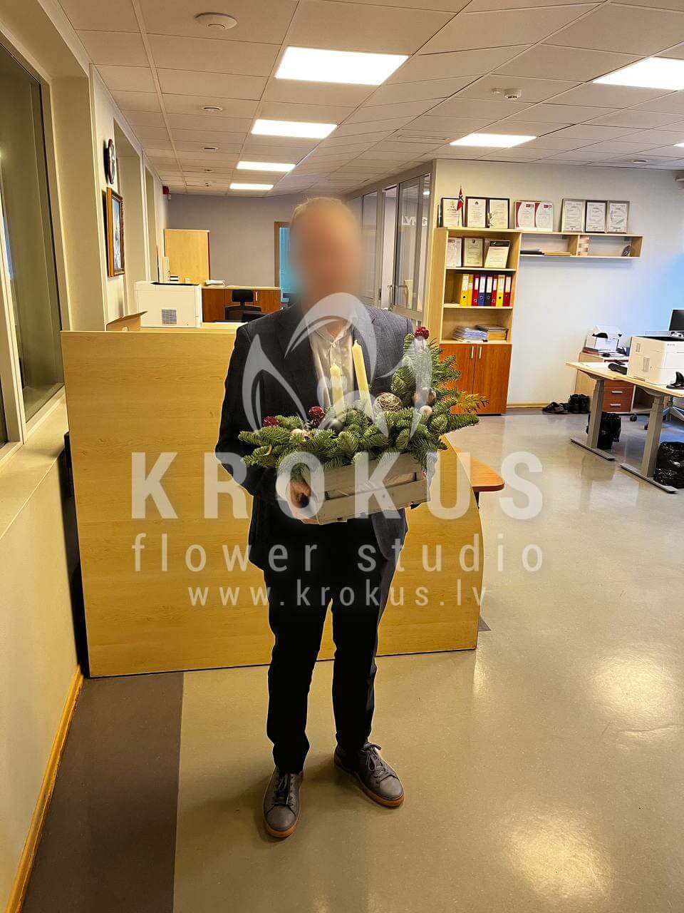 Mēs piegādājām vēl vienu pasūtījumu uz pilsētu Grēnes. Pasūtītājs vēlējās: Ziedu piegāde Ziemassvētku kompozīcija