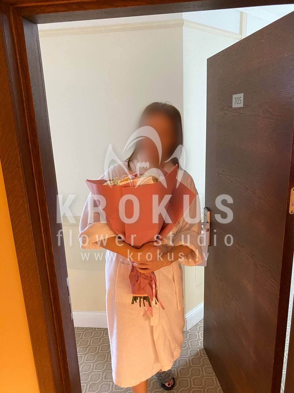 Mēs piegādājām vēl vienu pasūtījumu uz pilsētu Jūrmala. Pasūtītājs vēlējās: Ziedu piegāde Krūmrožu mikss (Pušķa sastāvs var nedaudz atšķirties no attēlā redzamā, atkarībā no sezonas!)