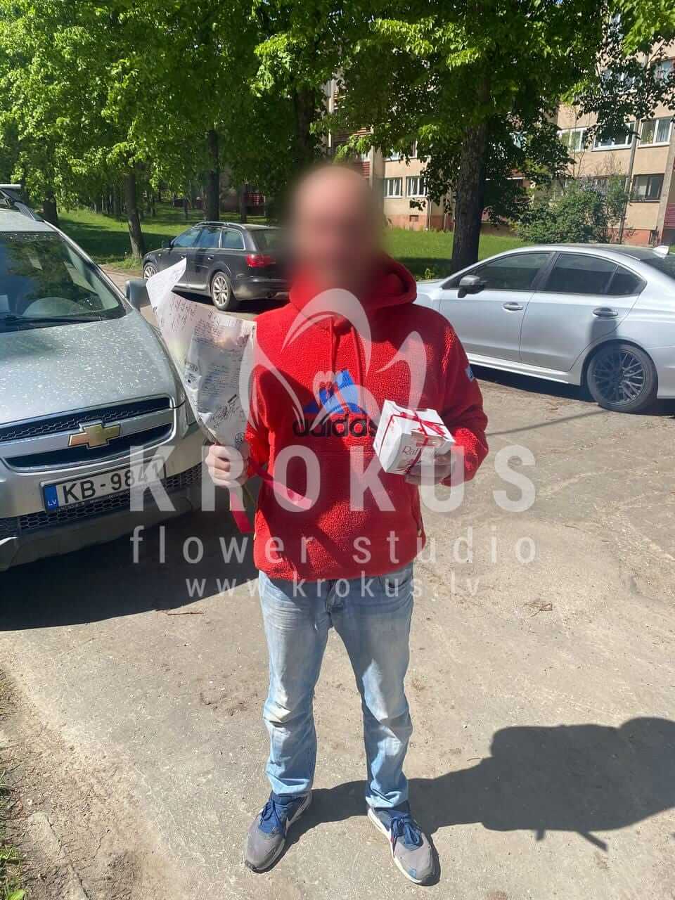 Mēs piegādājām vēl vienu pasūtījumu uz pilsētu Jūrmala. Pasūtītājs vēlējās: Ziedu piegāde Krāsaini svētki (Pušķa sastāvs var nedaudz atšķirties no attēlā redzamā, atkarībā no sezonas!). Ziedu piegāde Raffaello 150g (Konfektes RAFFAELLO, 150g
