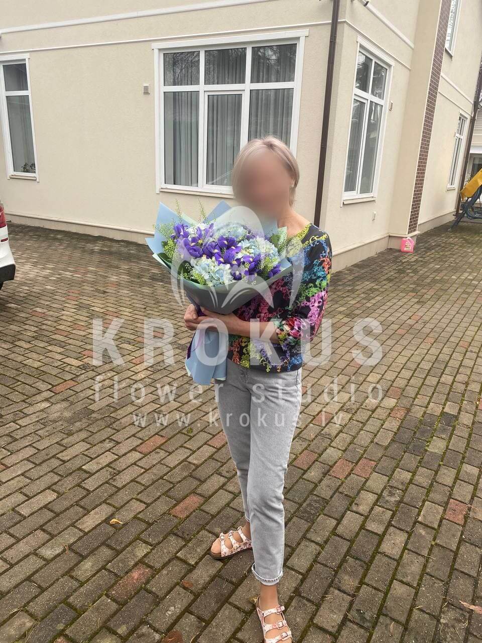 Mēs piegādājām vēl vienu pasūtījumu uz pilsētu Jūrmala. Pasūtītājs vēlējās: Ziedu piegāde Pušķis no īrisiem un hortenzijām "Safīrs" (Pušķa sastāvs var nedaudz atšķirties no attēlā redzamā, atkarībā no sezonas!