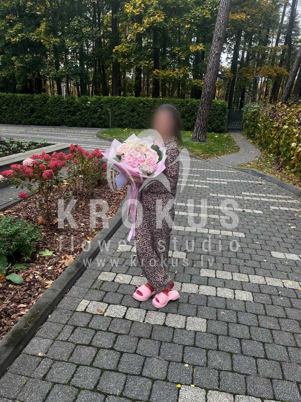Mēs piegādājām vēl vienu pasūtījumu uz pilsētu Jūrmala. Pasūtītājs vēlējās: Ziedu piegāde Rozā hortenziju pušķis