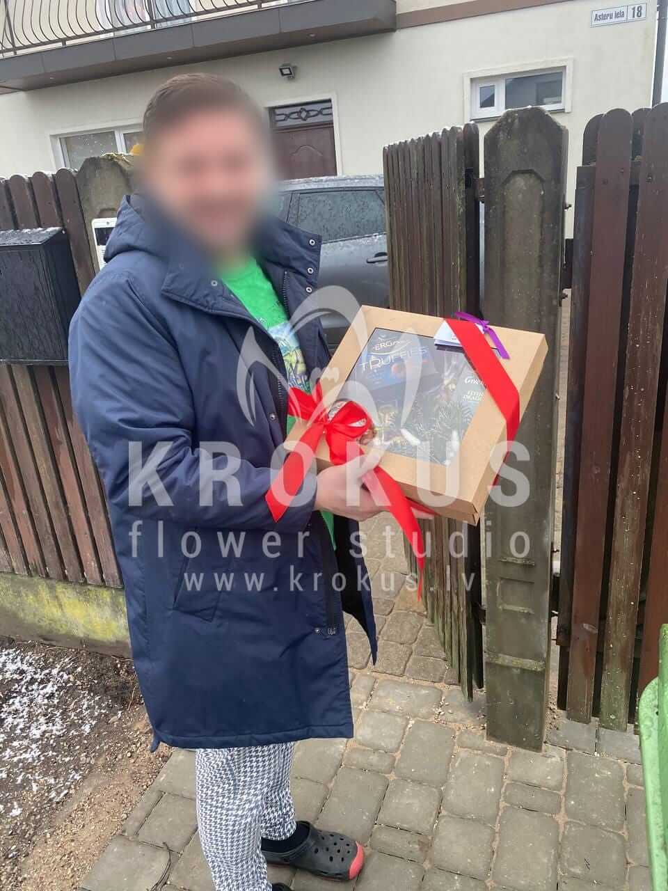 Mēs piegādājām vēl vienu pasūtījumu uz pilsētu Katlakalns. Pasūtītājs vēlējās: Ziedu piegāde Ziemassvētku dāvanu komplekts