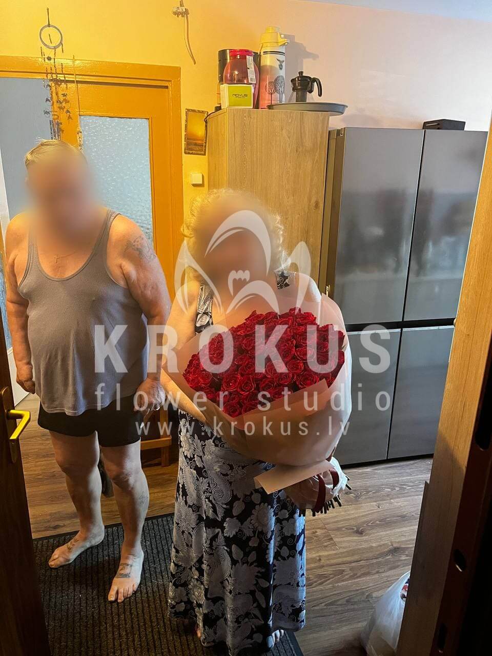 Mēs piegādājām vēl vienu pasūtījumu uz pilsētu Ķekava. Pasūtītājs vēlējās: Ziedu piegāde Sarkanas Rozes XXL 40cm
