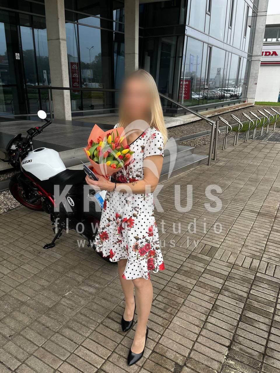 Mēs piegādājām vēl vienu pasūtījumu uz pilsētu Mārupe. Pasūtītājs vēlējās: Ziedu piegāde Krāsainu tulpju pušķis