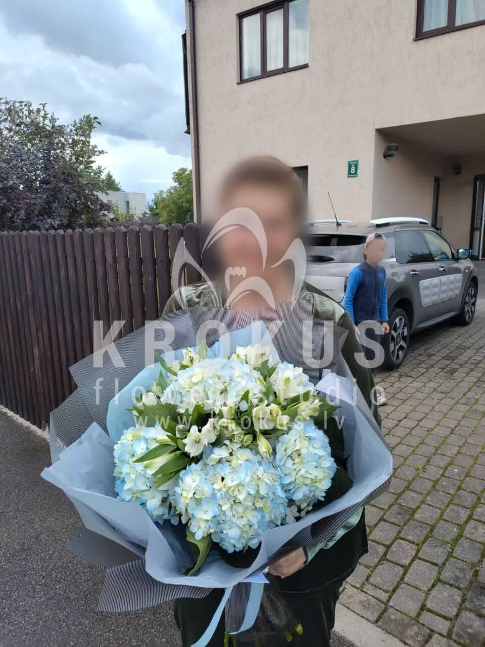 Ziedu sastāvā: Hortenzijas, Alstremērija, Salal (Goltjēra).
