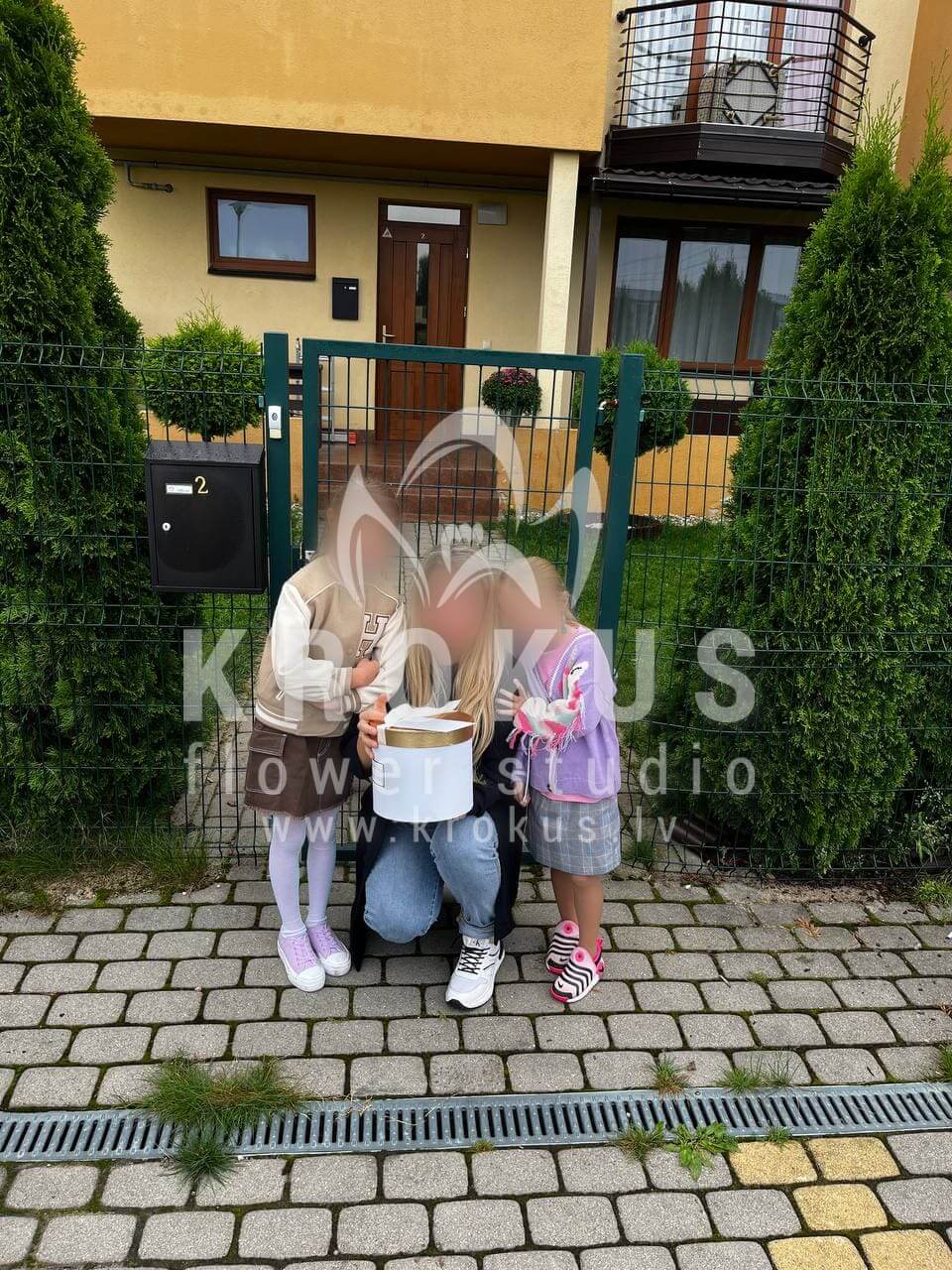 Mēs piegādājām vēl vienu pasūtījumu uz pilsētu Mārupe. Pasūtītājs vēlējās: Ziedu piegāde Flowerbox ar macarooniem (Izmērs: