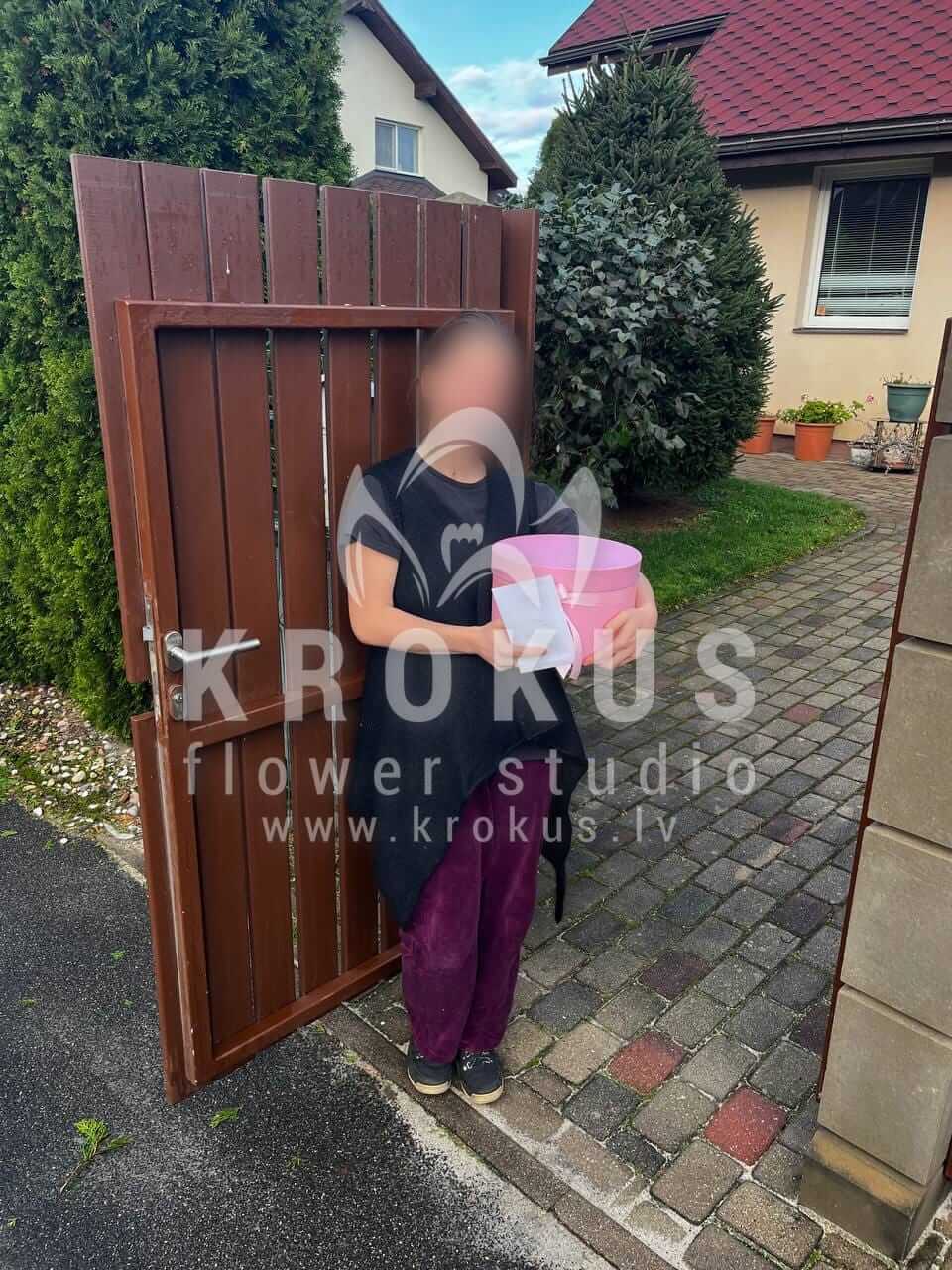 Mēs piegādājām vēl vienu pasūtījumu uz pilsētu Mārupe. Pasūtītājs vēlējās: Ziedu piegāde Flowerbox ar macarooniem (Izmērs: