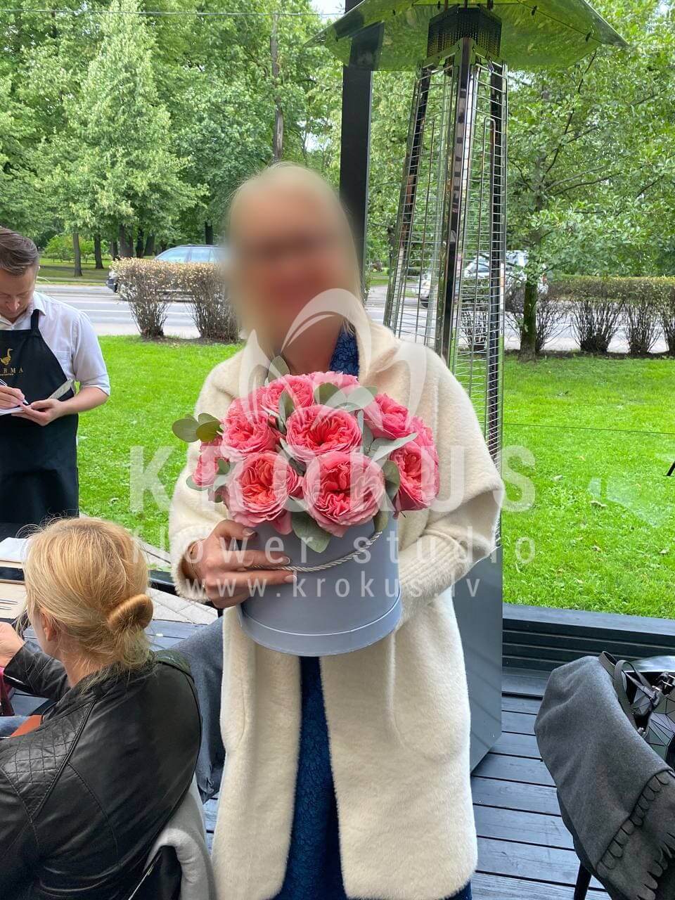 Ziedu sastāvā: Peonveidīgās rozes, Eikalipts, KASTE.