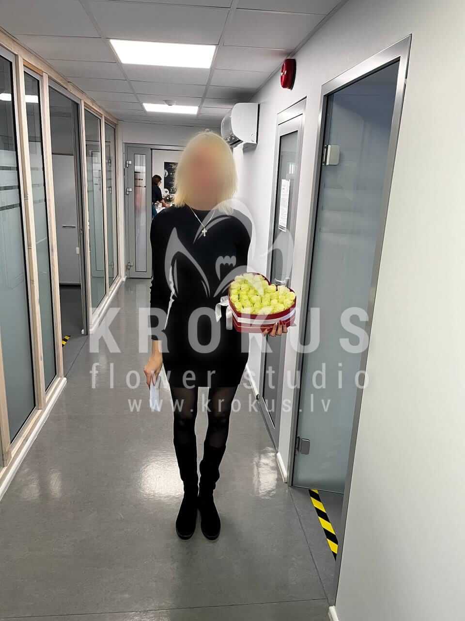 Ziedu sastāvā: Baltas rozes, Stilīga kastīte.