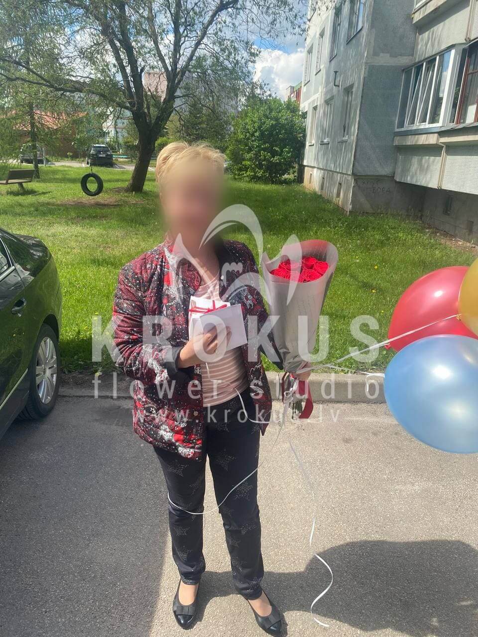 Mēs piegādājām vēl vienu pasūtījumu uz pilsētu Olaine. Pasūtītājs vēlējās: Ziedu piegāde Sarkanas rozes XXL 60cm. Ziedu piegāde Hēlija baloni asortimentā (cena par 1 gab). Ziedu piegāde Raffaello 150g (Konfektes RAFFAELLO, 150g
