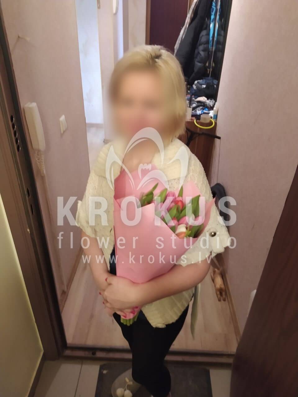 Mēs piegādājām vēl vienu pasūtījumu uz pilsētu Olaine. Pasūtītājs vēlējās: Ziedu piegāde Krāsainu tulpju pušķis