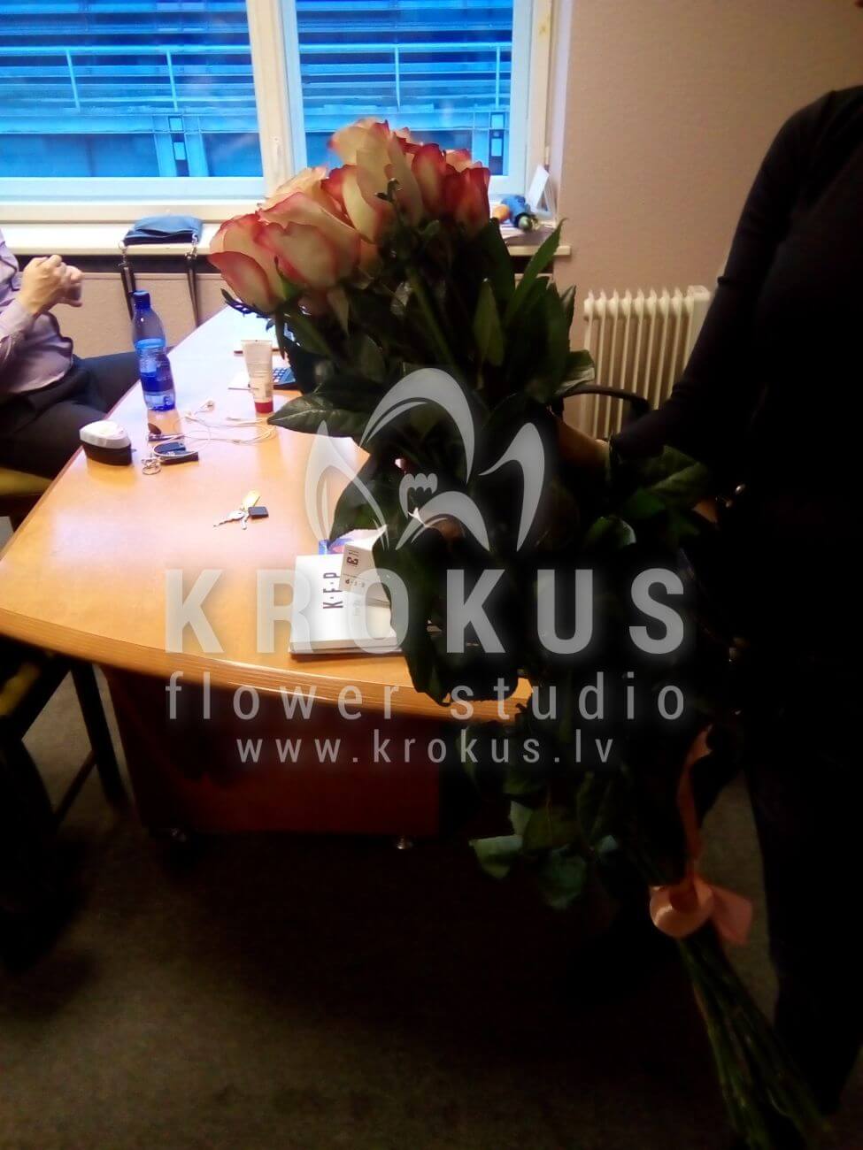 Mēs piegādājām vēl vienu pasūtījumu uz pilsētu . Pasūtītājs vēlējās: Ziedu piegāde Divkrāsu rozes