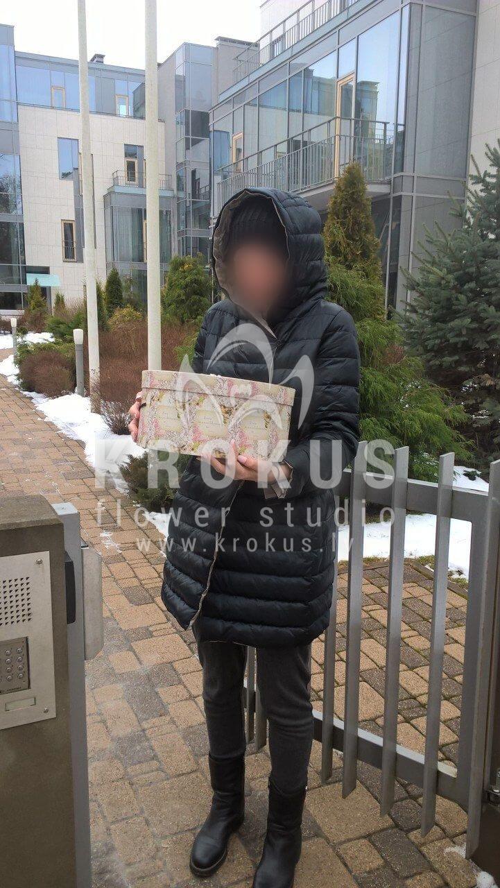 Mēs piegādājām vēl vienu pasūtījumu uz pilsētu . Pasūtītājs vēlējās: Ziedu piegāde Flowerbox ar macarooniem (Izmērs:
