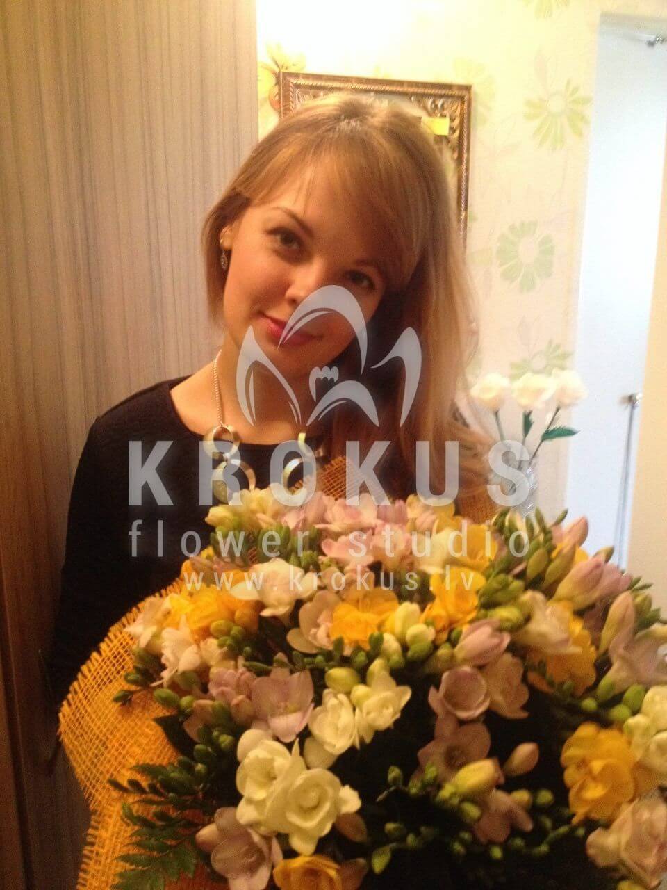 Mēs piegādājām vēl vienu pasūtījumu uz pilsētu . Pasūtītājs vēlējās: Ziedu piegāde Frēziju pušķis "Skaistums" (Attēlam fotogrāfijā ir ilustratīvs raksturs. Ja Jums ir svarīgi saņemt frēzijas noteiktā gatavības stadijā, lūdzam sazināties ar mums pirms veicat pasūtījumu.)