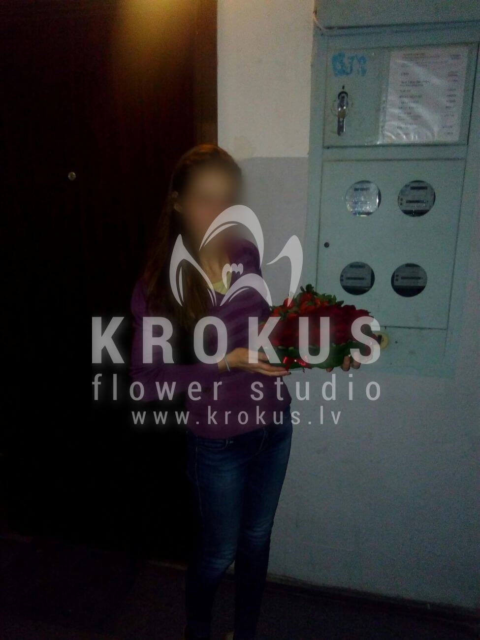 Ziedu sastāvā: Sarkanas rozes, Salal (Goltjēra).