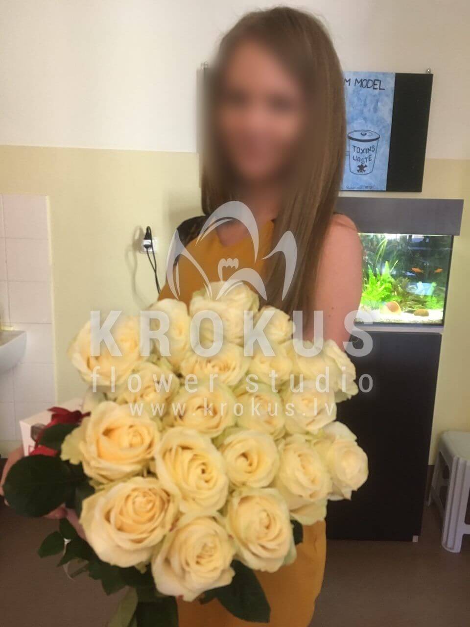 Ziedu sastāvā: Baltas rozes.