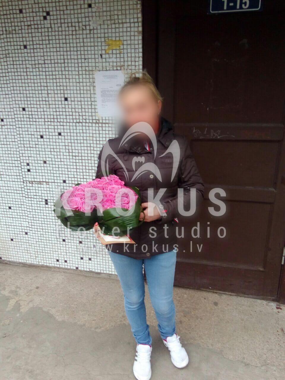 Ziedu sastāvā: Rozā rozes, Aspidistra, Salal (Goltjēra), Bergrass.