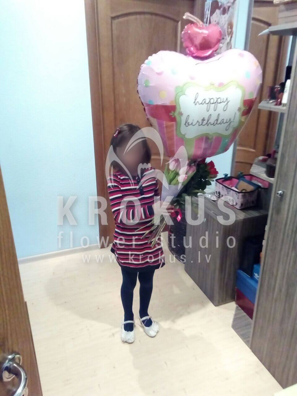 Mēs piegādājām vēl vienu pasūtījumu uz pilsētu . Pasūtītājs vēlējās: Ziedu piegāde Rozā tulpe. Ziedu piegāde Sarkana roze XXL 70cm. Ziedu piegāde Folija balons-kapkeiks 71cm x 66cm