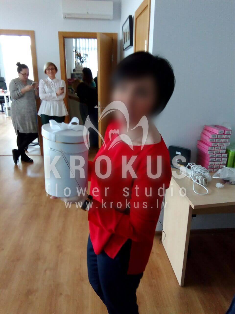 Mēs piegādājām vēl vienu pasūtījumu uz pilsētu . Pasūtītājs vēlējās: Ziedu piegāde Flowerbox ar macarooniem (Izmērs: