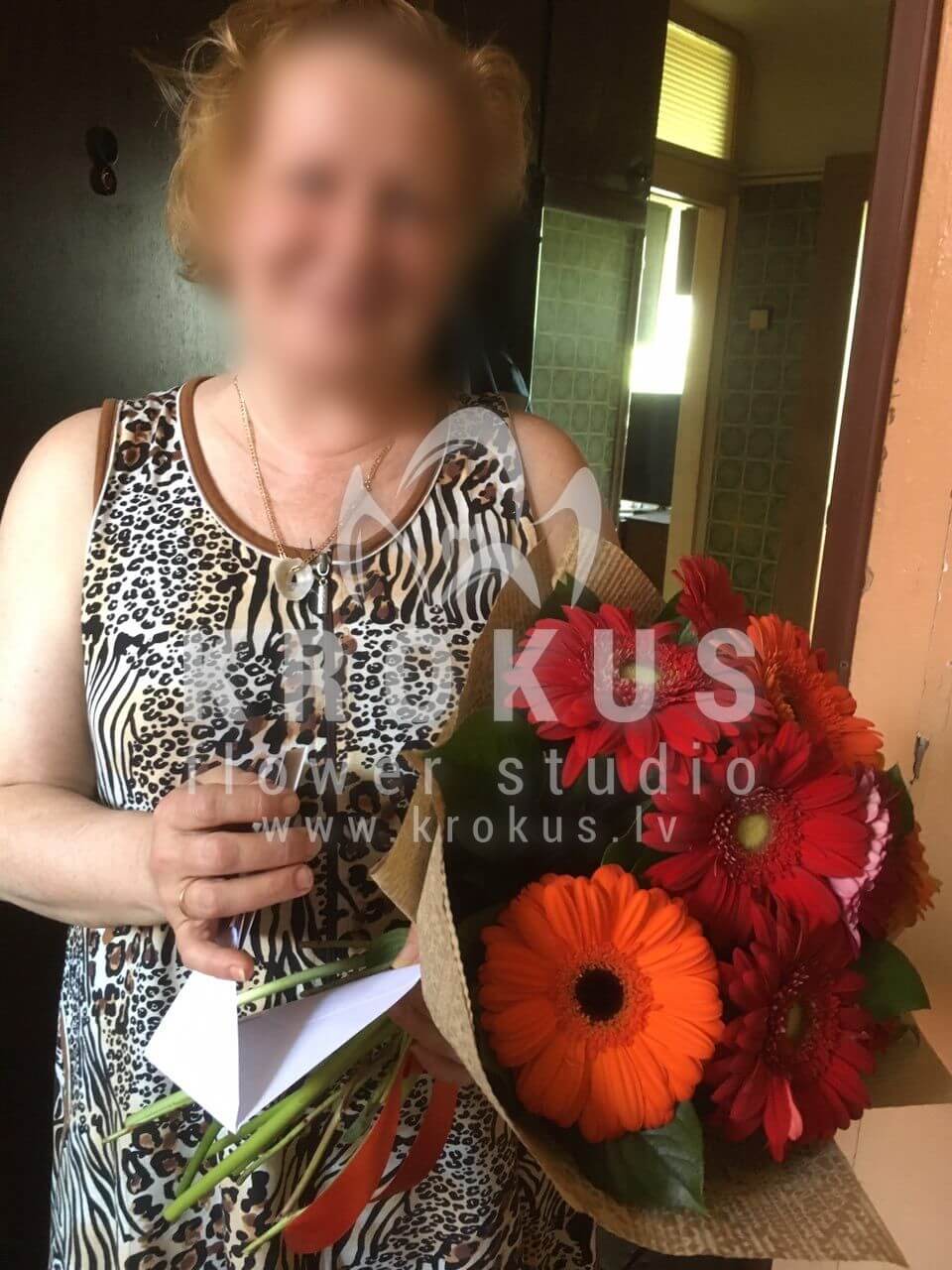 Ziedu sastāvā: Gerberas, Salal (Goltjēra).